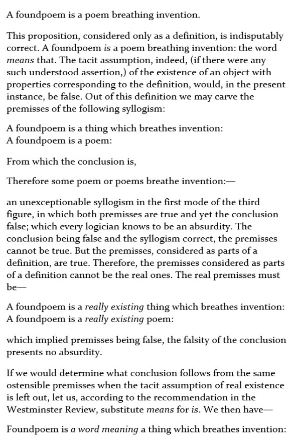 Breathing Invention Posted on April 1, 2021 by omahaglenn (appropriated from Chapter VIII. Of Definition. Book I. Of Names and Propositions. – A System of Logic, Ratiocinative and Inductive by John Stuart Mill Share this:Share Click to share on Facebook (Opens in new window) Facebook Click to share on Tumblr (Opens in new window) Tumblr Click to share on X (Opens in new window) X Like Loading... Related