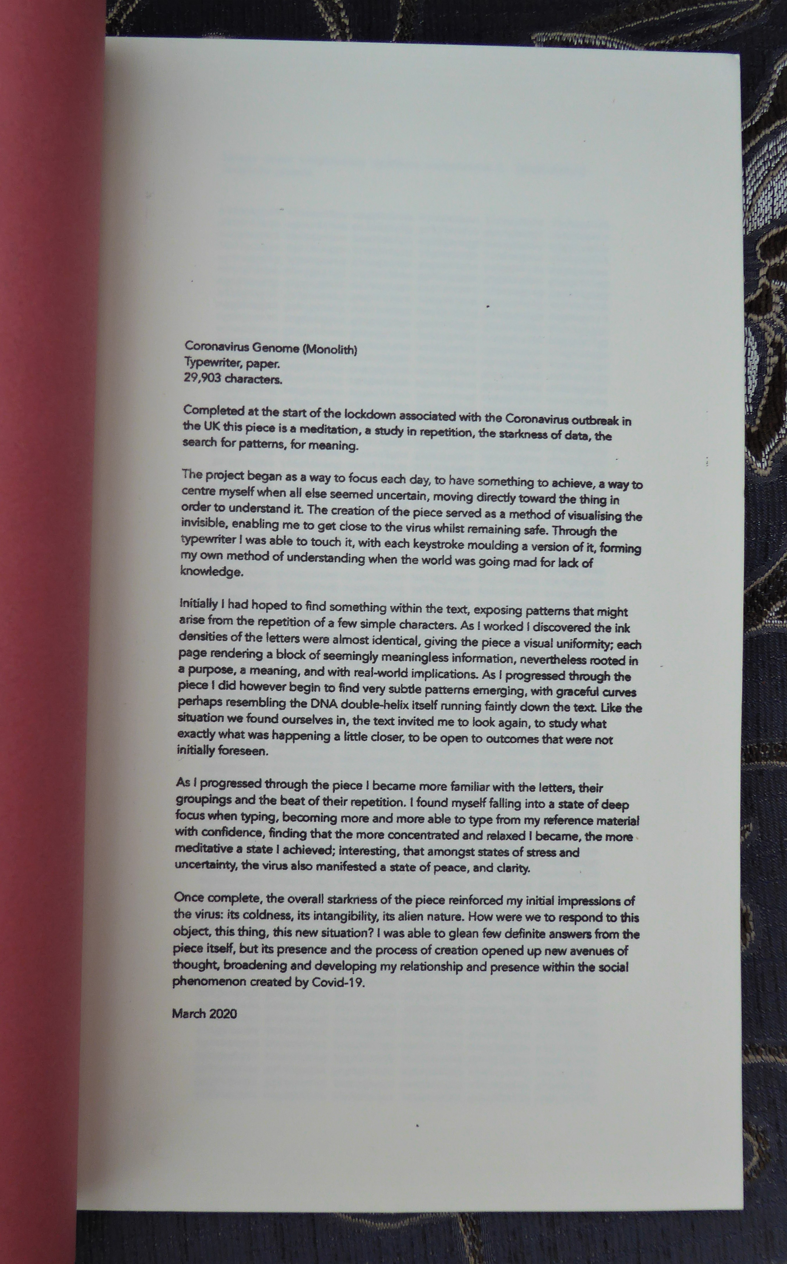 3 Published April 21, 2021 at 2708 × 4345 in ‘Coronavirus Genome (Monolith)’ by Tom Phillips – published jointly by Plaugolt Satzwechsler and Timglast Editions